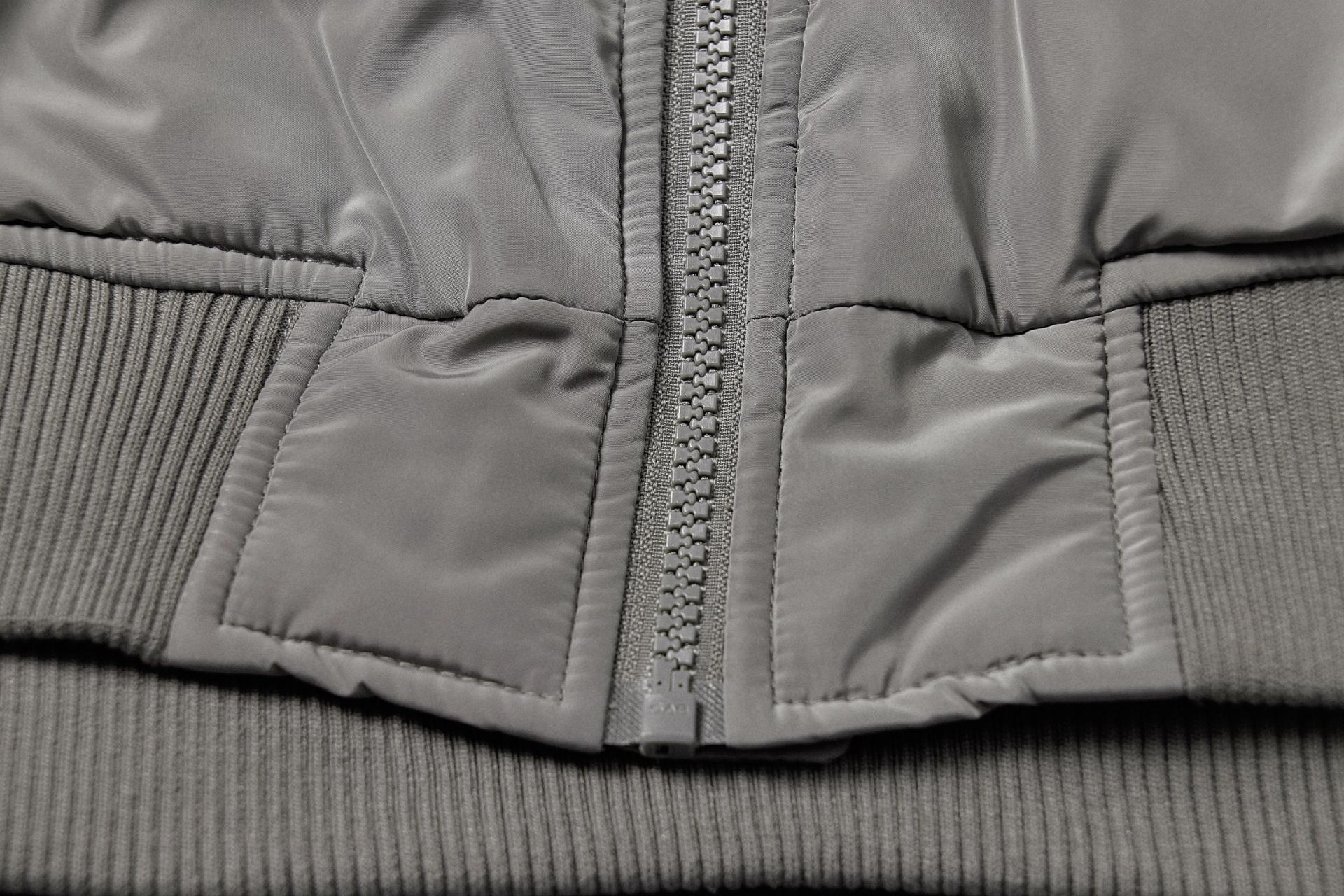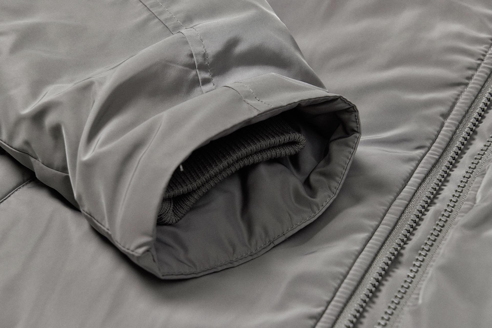 하이넥 디자인과 시보리를 소매단 안쪽으로 내장시킨 세련된 디자인의 MA-1 자켓.